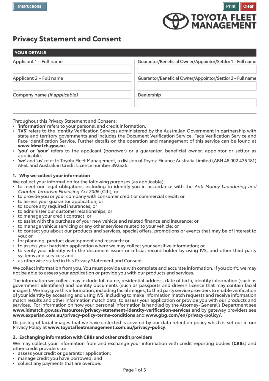 Form required to use and exchange personal and credit information.