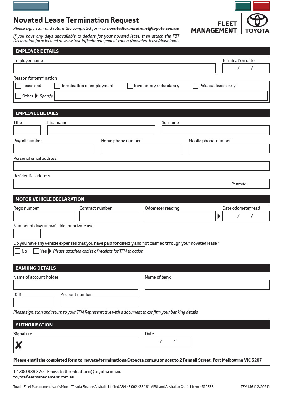 Download below relevant TFM Novated Lease brochures, forms, PDS and more.